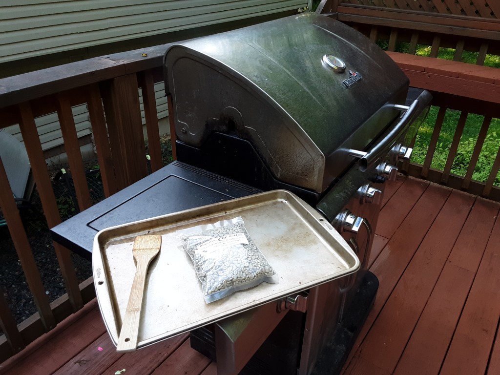 After I inadvertently smoked out my house and kitchen with the Bali batch, I was determined to figure out an alternative means of getting my roast on. The gas grill made the most sense. Sticking with the baking pan for the beans I set for low-medium heat.
